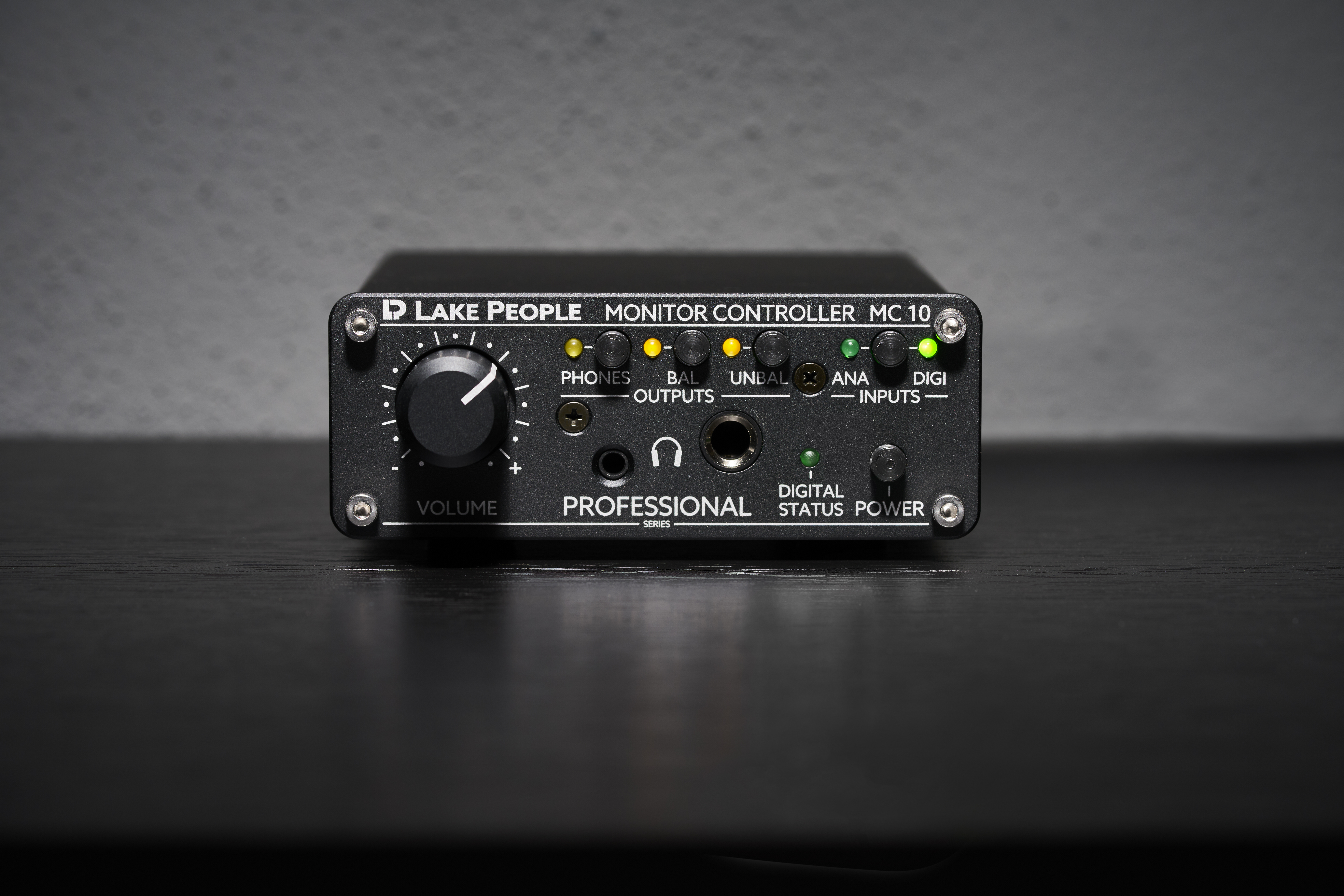 Der Lake People MC10 bringt die hochwertige Abhör-Verwaltung von MC100 und MC50 in ein enorm kompaktes Format von 108 x 41 x 143 mm. So ist der MC10 die perfekte Wahl für Setups mit wenig Platz – und für den Einsatz unterwegs. Gerade auf Reisen punktet der MC10 mit seinem Kopfhörerverstärker in exzellenter Lake People Qualität, vollständig Bus-powered und damit nicht auf einen eigenen Stromanschluss angewiesen. Natürlich ist bei einem Lake People Kopfhörerverstärker die Pre-Gain Schaltung integriert, mit der sich der Verstärker optimal an die Empfindlichkeit des verwendeten Kopfhörers anpassen lässt. Bei Bedarf lässt sich der MC10 auch über ein externes Netzteil betreiben, um den Akku des angeschlossenen Laptops oder Tablets zu entlasten.